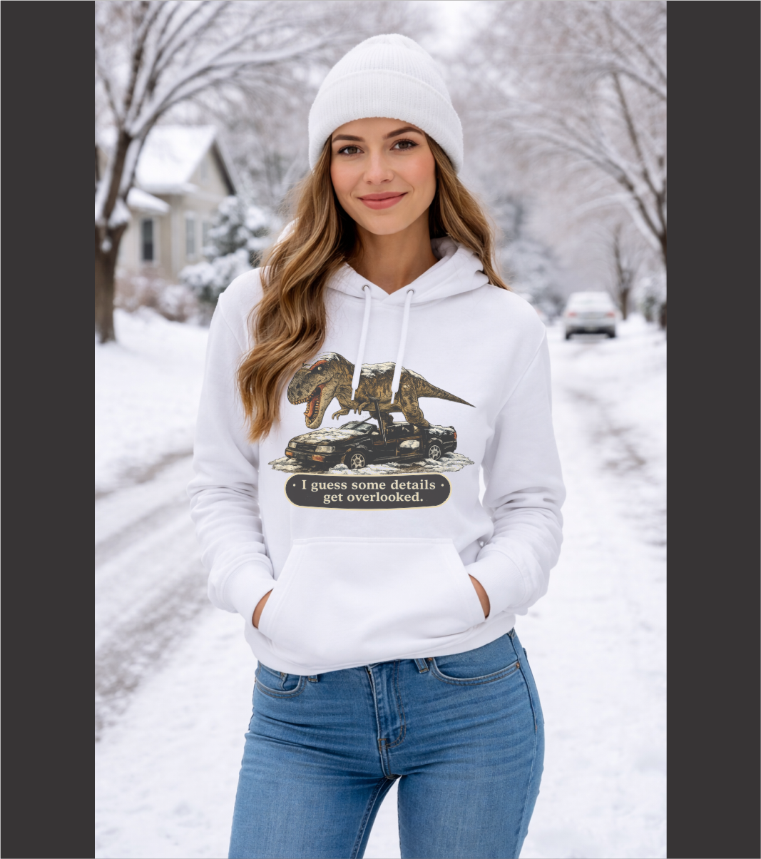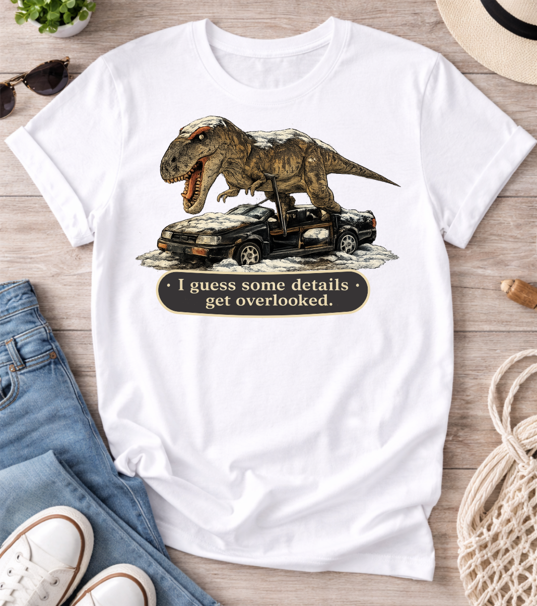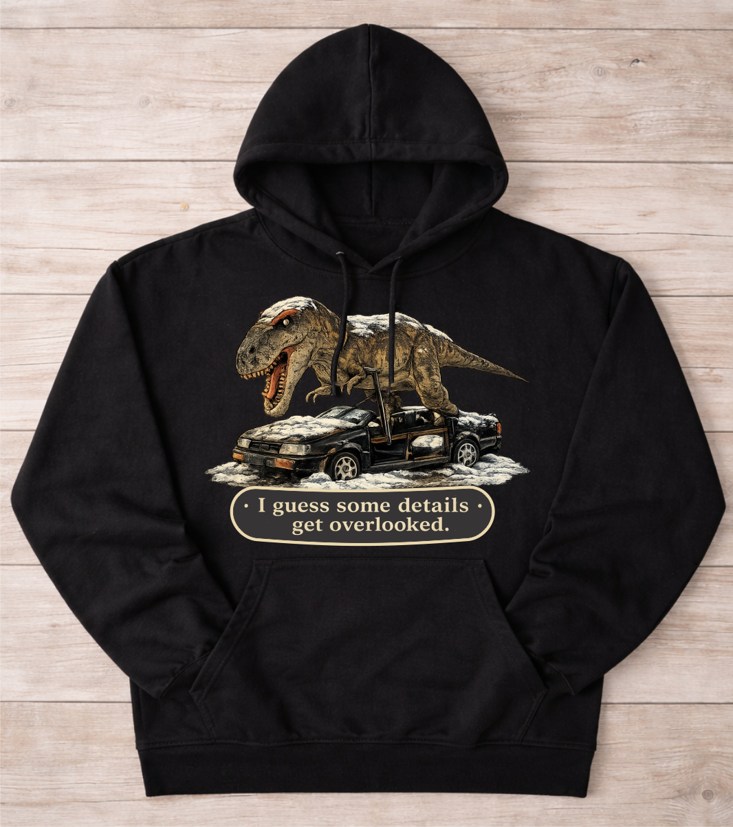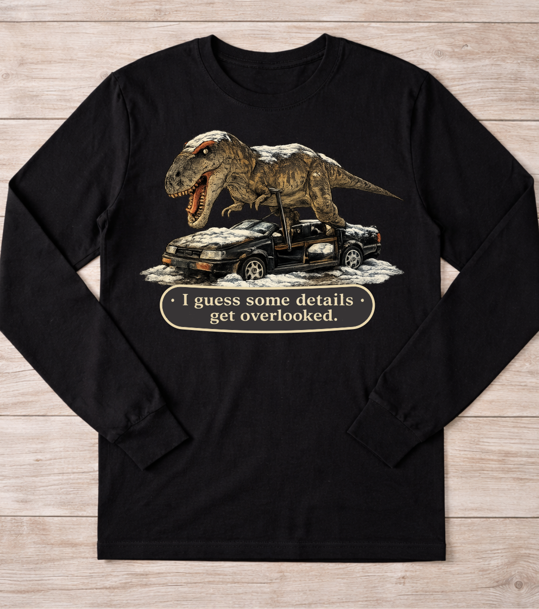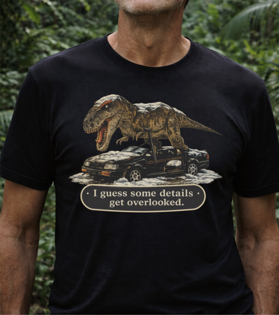 The Not AI T-Rex design features a jaw-dropping, real-world scene that looks too wild to be true—paired with the bold reminder up top: “THIS IS NOT AI!”